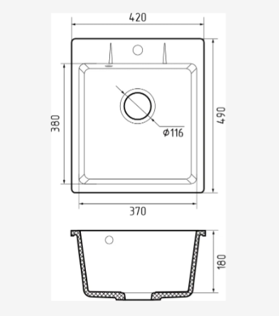 Глубина чаши составляет 180 мм, что считается оптимальным размером для кухонных моек.