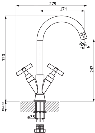 • Высокий излив позволяет без труда мыть посуду больших размеров