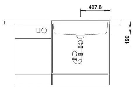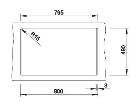 *Учитывать ширину пристенного канта в случае установки мойки возле стены или пенала.