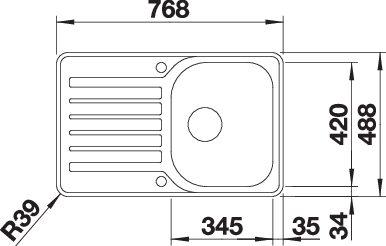 *Учитывать ширину пристенного канта в случае установки мойки возле стены или пенала.