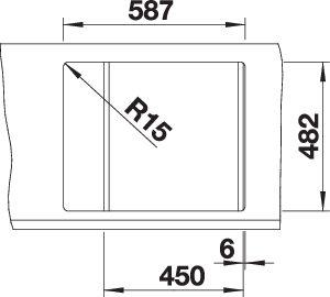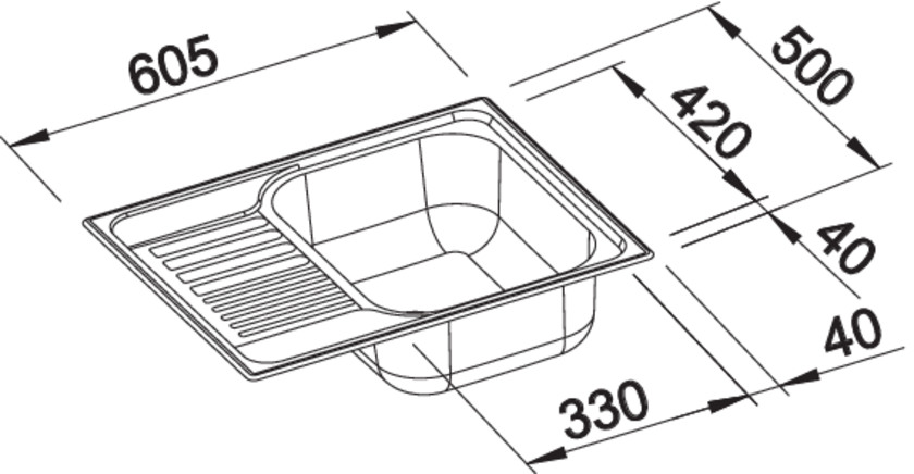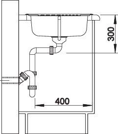 *Учитывать ширину пристенного канта в случае установки мойки возле стены или пенала.