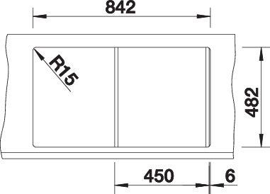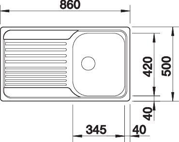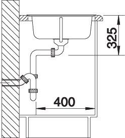 *Учитывать ширину пристенного канта в случае установки мойки возле стены или пенала.