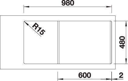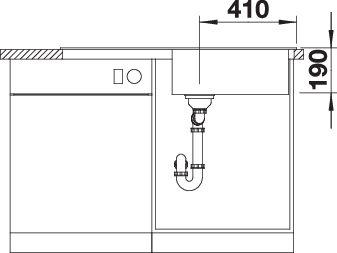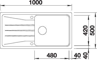 *Учитывать ширину пристенного канта в случае установки мойки возле стены или пенала.
