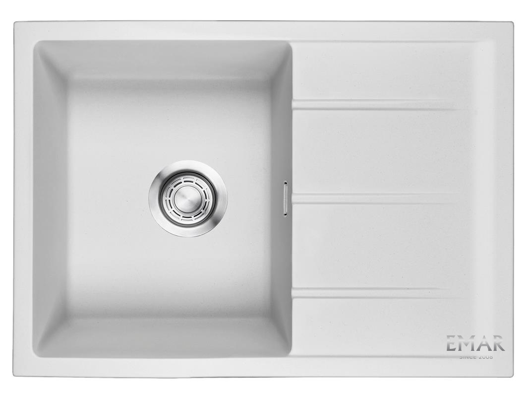 Кухонные мойки EMAR QUARTZ на 78% состоят из измельченного кварца различных фракций и 22% связующих полиэфирных смол. Дополнительные связующие компоненты образуют антибактериальную защиту. Бесшумные, практичны в уходе и удобны в эксплуатации.