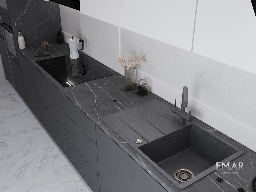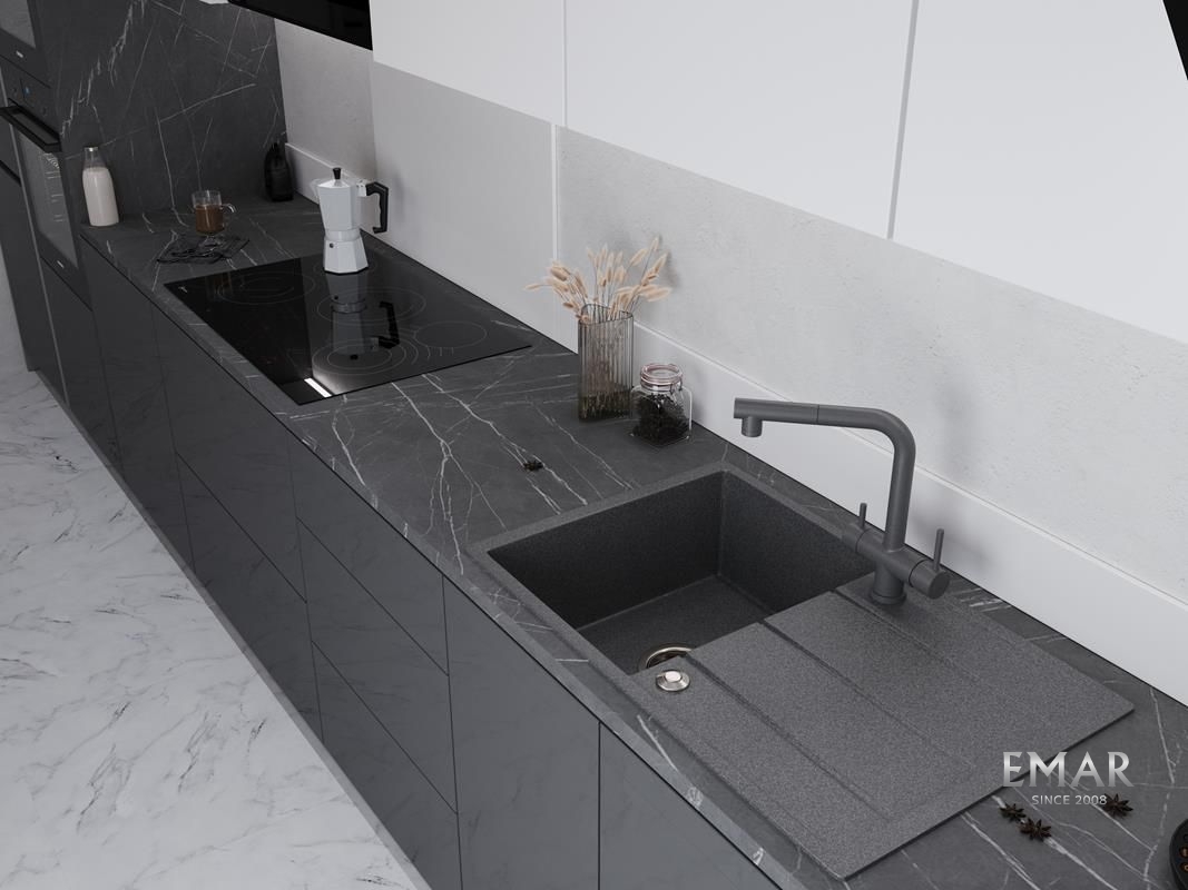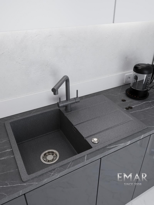 Кухонные мойки EMAR QUARTZ на 78% состоят из измельченного кварца различных фракций и 22% связующих полиэфирных смол. Дополнительные связующие компоненты образуют антибактериальную защиту. Бесшумные, практичны в уходе и удобны в эксплуатации.