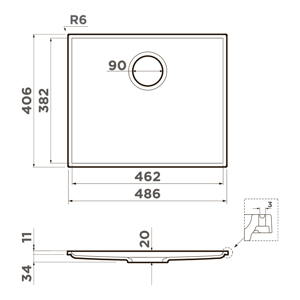 ширина 486 мм x длина 406 мм x глубина 34 мм