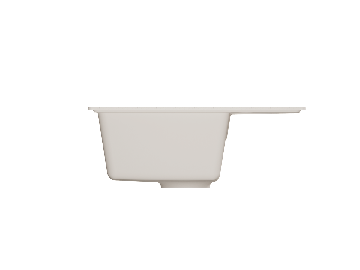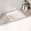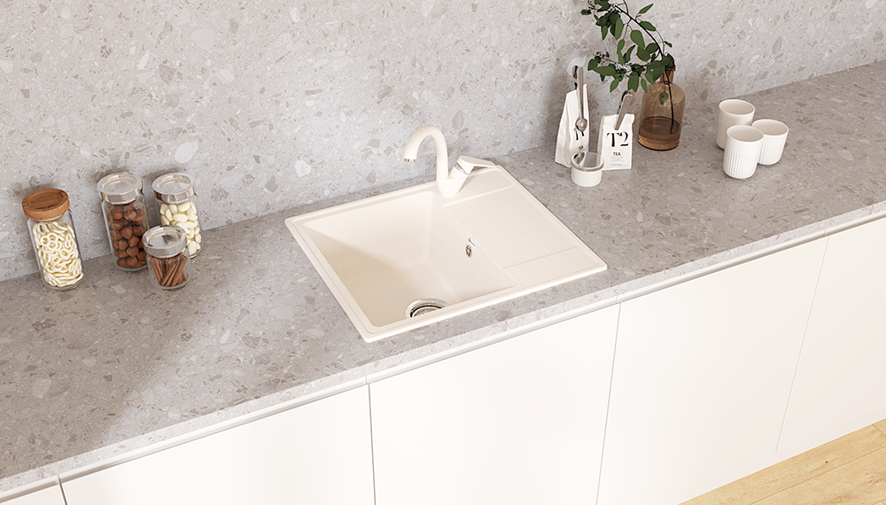 Материал мойки представляет из себя искусственный камень, который является композитом на основе натурального мрамора и связующих смол. Искусственный камень существенно снижает уровень шума при падении струи воды. Специальное покрытие гелькоут защищает поверхность мойки от загрязнений и бытовых царапин, делая уход за мойкой легким и простым.