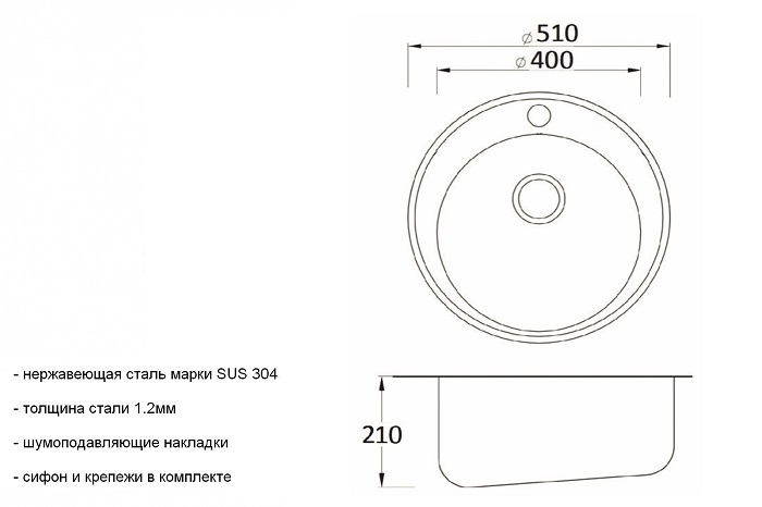 | Размеры (ДхШ) | 510 х 510 мм |