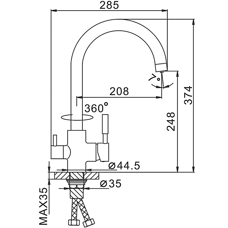 | Длина излива | 225 мм |
