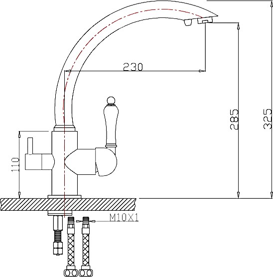 Тип однорычажный, с отдельной ручкой управления питьевой водой