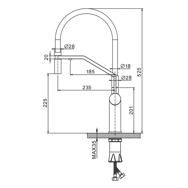 | Высота смесителя | 525 мм |