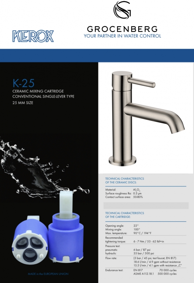 Запорный клапан смесителя Керамический картридж